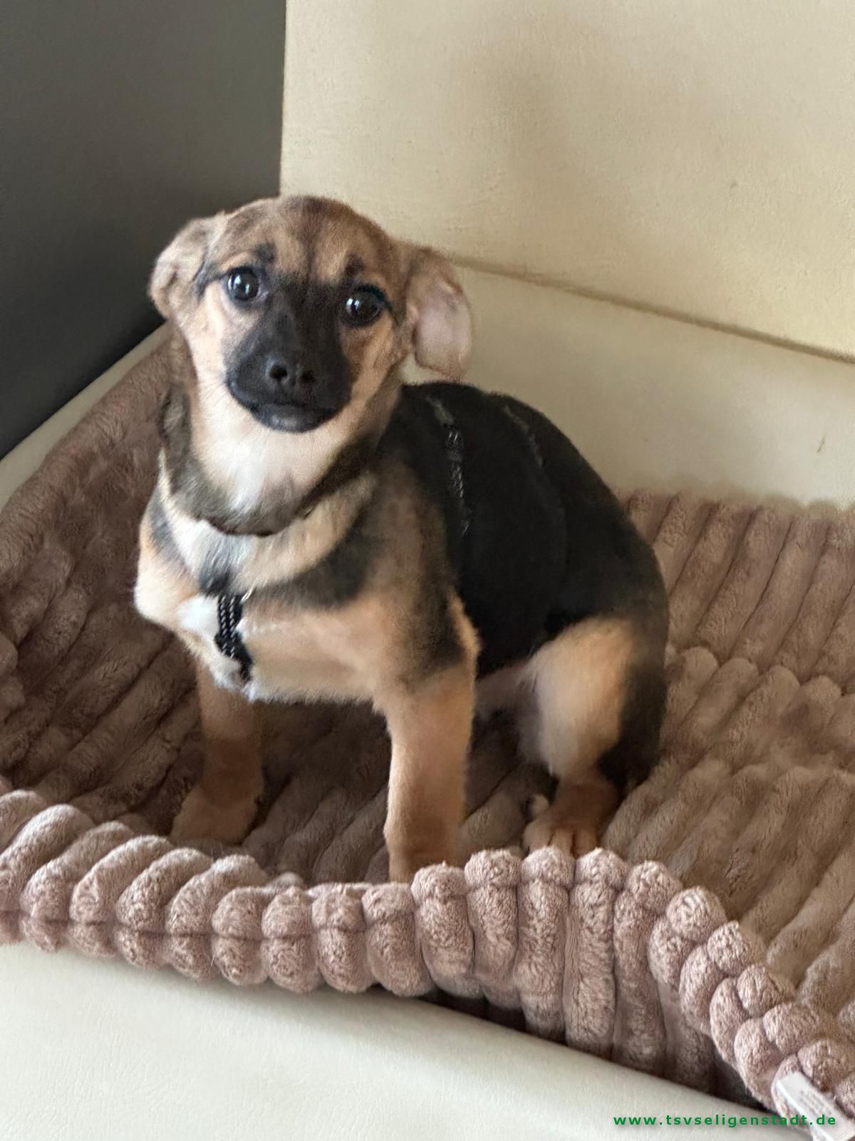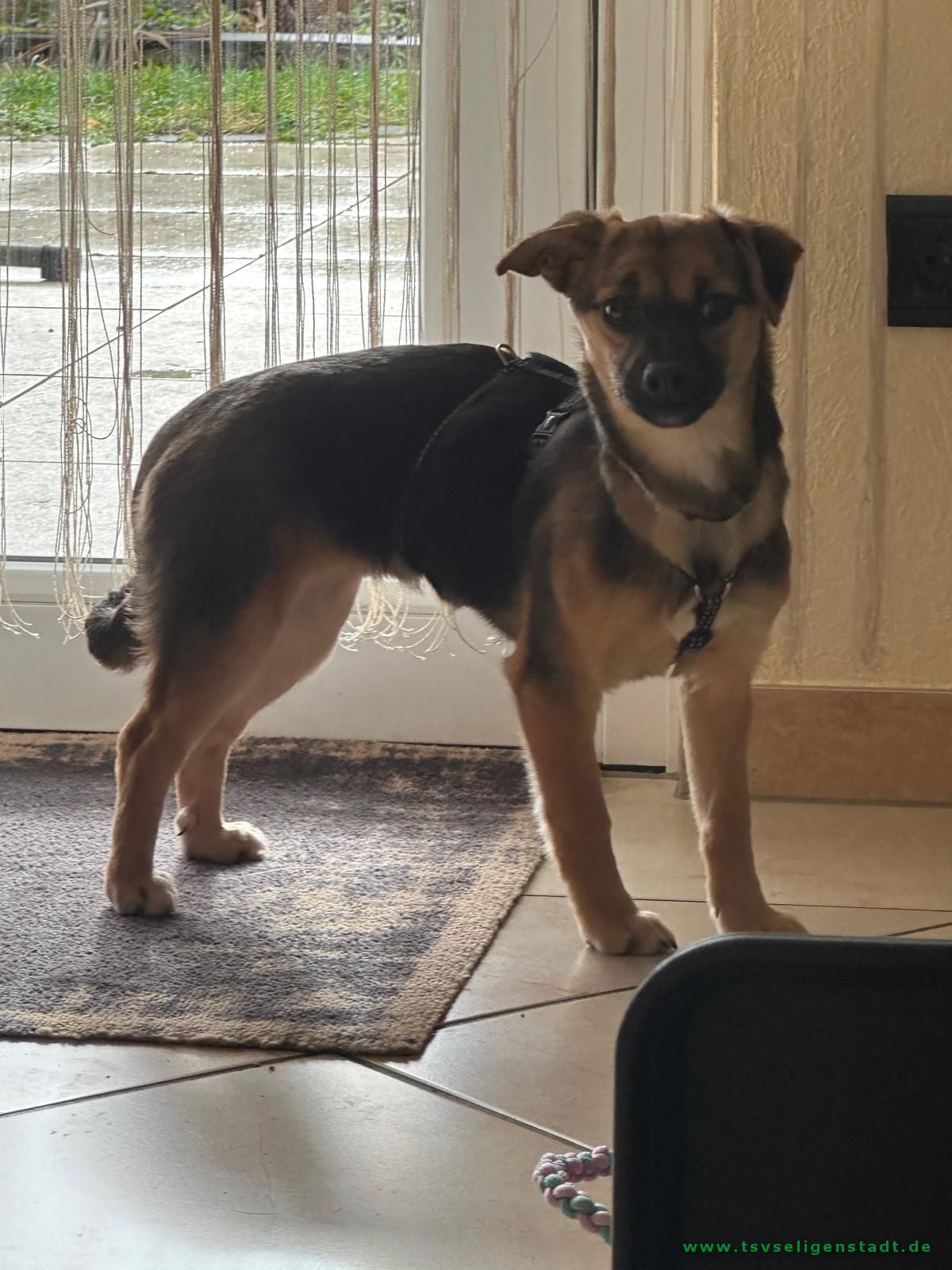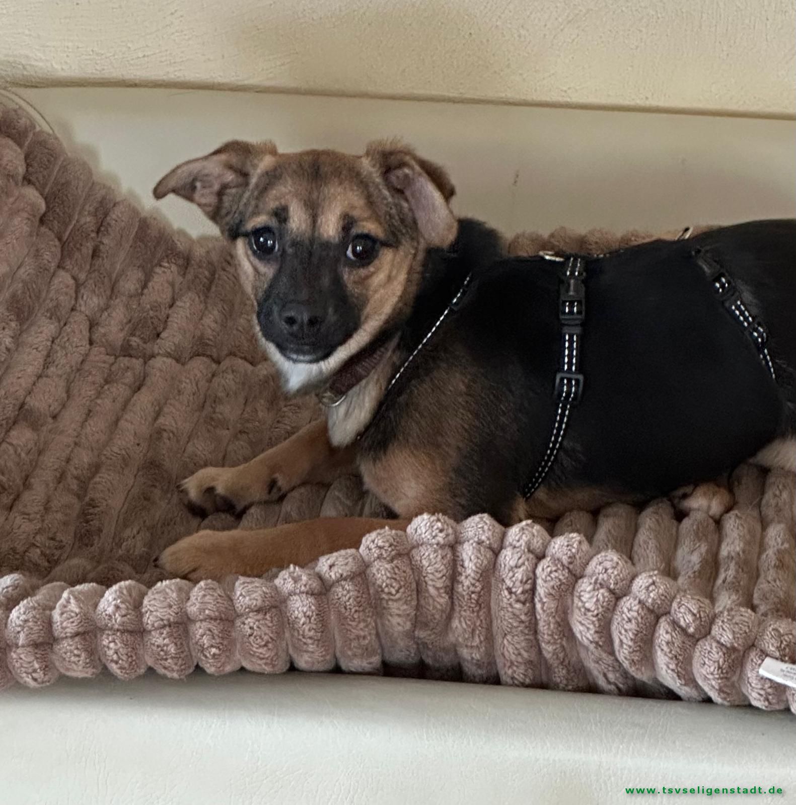 Mit aktuell ca. 25 cm Schulterhöhe und etwa 4 kg Gewicht gehört sie zu den Kleinen. Ausgewachsen wird sie vermutlich ungefähr 35 cm groß und ein Endgewicht von maximal 7 kg erreichen. Eine süße kleine Maus 🥰
