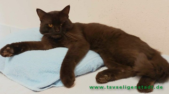 Schoko ist ein Fundkater, der unverständlicherweise von niemandem vermisst gemeldet oder gesucht wurde. Er ist ein reinrassiger BKH von wunderschöner brauner Fell-Farbe und bernsteinfarbenen Augen.