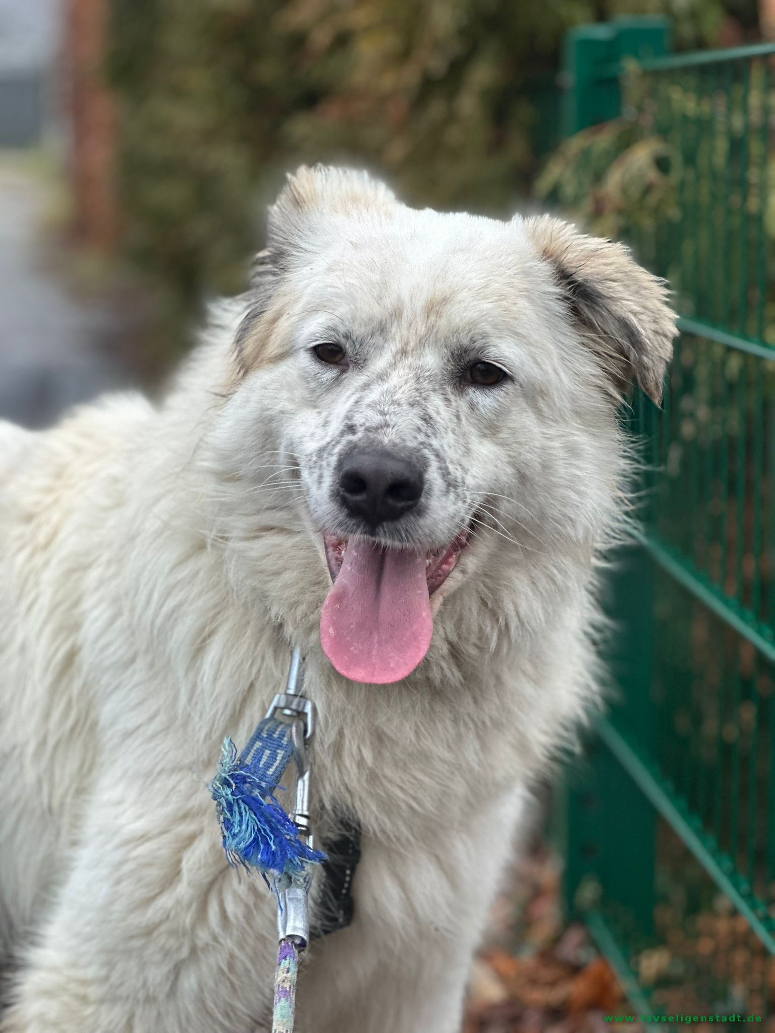 Bei Jamie handelt es sich vermutlich um einen Herdenschutz-Mix, möglicherweise mit Pyrenäenhund-Anteilen. Er ist mit einer Schulterhöhe von ca. 60 cm und etwa 28 kg eine stattliche und beeindruckende Erscheinung.